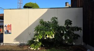 塗装の前に、ガレージ横にある、花の木の撤去作業もさせて頂きました。