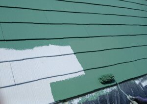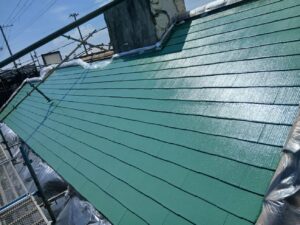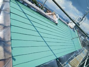 太子町にて、カラーベスト屋根の、中塗りを行いました。